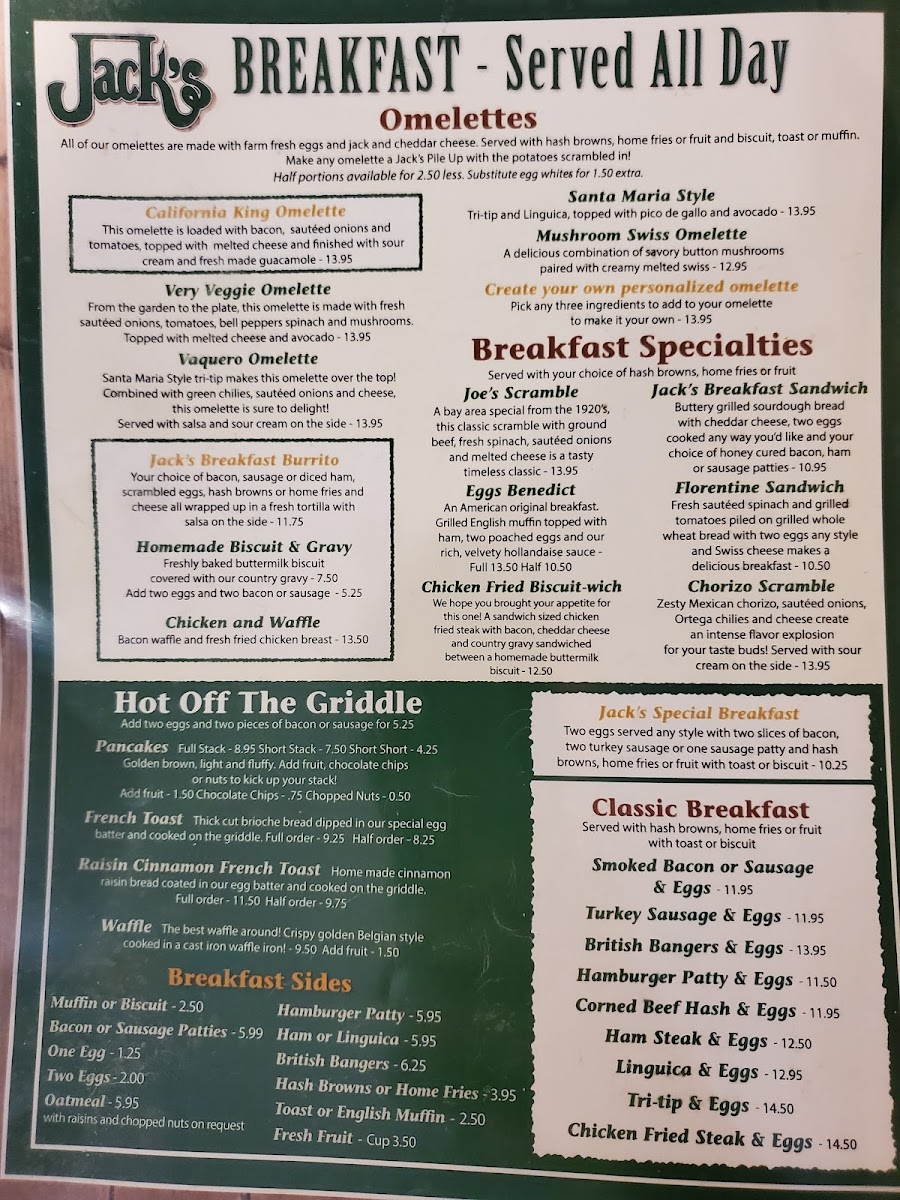 Welcome to Jack's In Old Orcutt, a charming eatery nestled in the heart of Orcutt, California. Known for its unpretentious yet delicious comfort food, this local gem offers a menu that fits every craving—from hearty breakfasts to satisfying dinners.